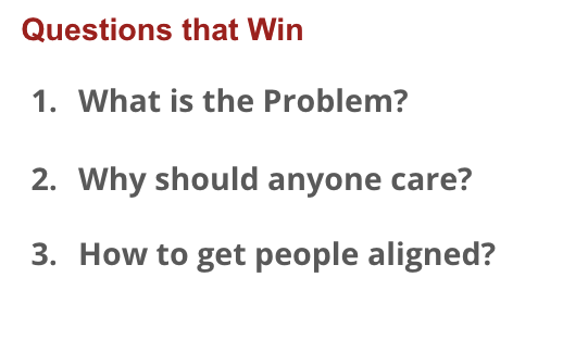 Something happens to the human mind when it hears the why, the origin story and why something should be relevant to the world. Whether it is sales, a product proposal or internal alignment building, the following three questions are the only ones that matter.